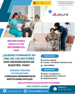 1. ✅ Certificado completo para personas trabajadoras SSCS0208 - Atención sociosanitaria a personas dependientes en instituciones sociales (450h) 🗓️ Inscripción hasta: Todo ...